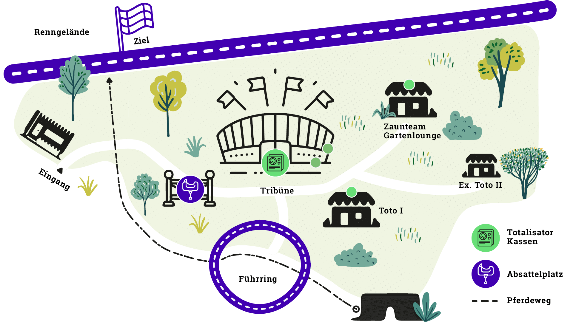 Die Rennbahn öffnet 2 Stunden vor dem ersten Rennen und schließt eine Stunde nach dem letzten Rennen.