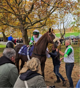 Emotionale Markenpräsenz direkt am Pferd – sichtbar im Rennen und auf vielen Fotos.